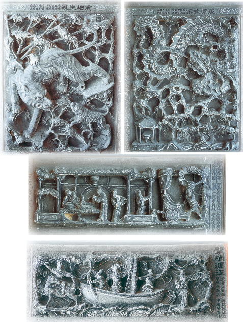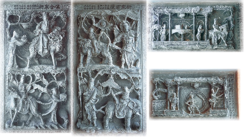 祈求吉慶堵:在龍虎堵外側的壁堵,通常雕刻人物與旗、球,相對面的一邊是人物、戟與磬牌;「旗球戟磬」與「祈求吉慶」諧音,稱為「祈求吉慶」堵。