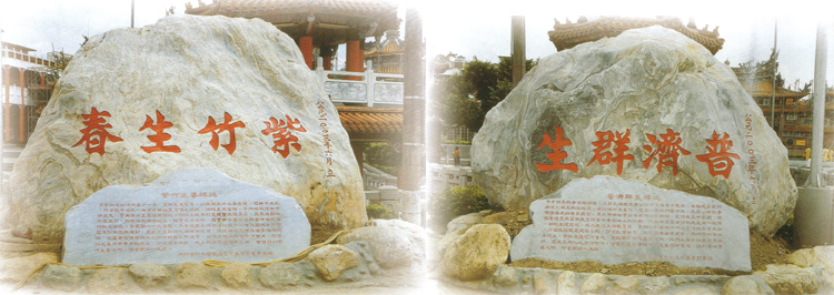 本寺創建於清雍正十一年,其後幾度修茸,於民國五十八年重建,歷時十九載,耗資數千萬元,而有今日壯麗宏偉之廟貌。猶憶重建當時,寺內存款僅四十餘萬元,實無法與重建經費相比。斯時承城添列重建會主任委員,並未主動向外界募捐,然而捐款源源而來,經費從未短缺,此實四方善信受觀音佛祖感召捐獻之功也。自民國八十九年起,本寺獲選承辦台灣地區十二項大型地方節慶三月份宋江陣活動,並蒙交通部觀光局補助經費,擴建廟埕表演舞台等相關設施,花蓮善信楊宗和先生特捐贈巨石供造景。兩座大理石材時價近百萬,楊宗和先生與本寺素昧平生,卻遠道來捐獻,誠為觀音佛祖靈感之功,茲值鐫刻紫竹生春之際,特書數語以為誌。