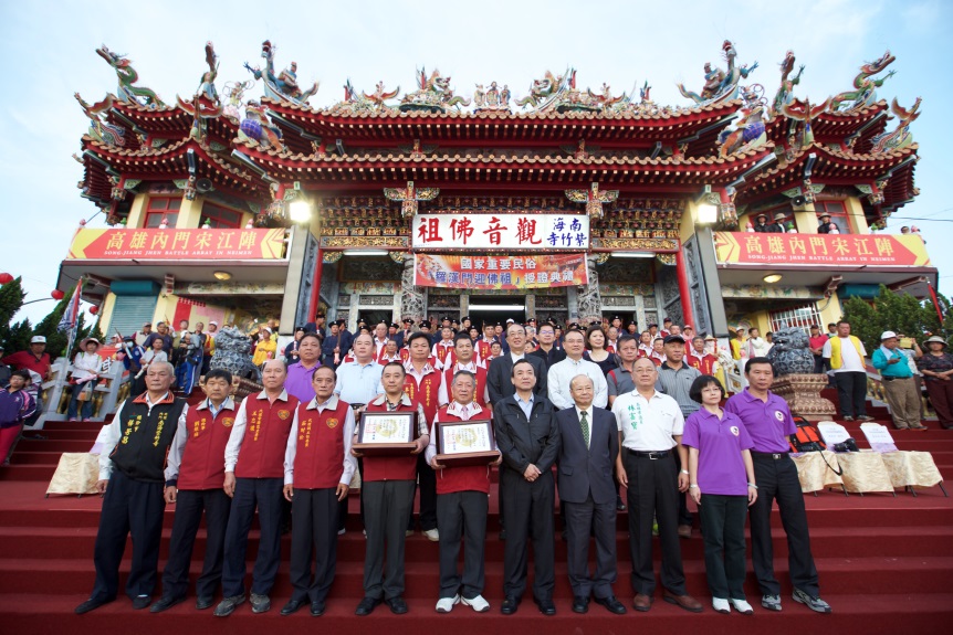 「內門紫竹寺」的爐主燈、頭旗,及其佛祖轎與龐大隨香,行於山林,壯闊而具氣勢。