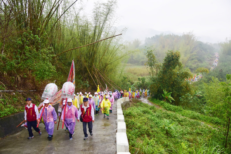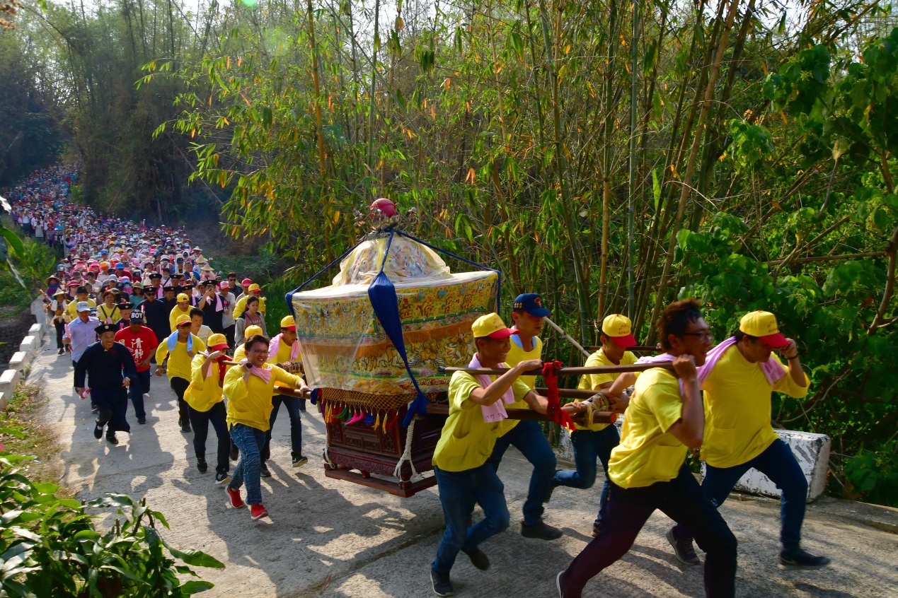 內門紫竹寺佛祖香陣行經「尪仔上天」路段,月世界景觀一覽無遺,頗具氣魄。(王大雄/攝)