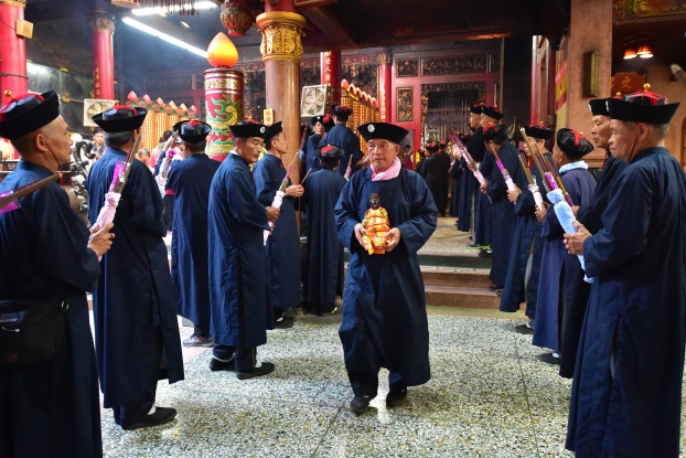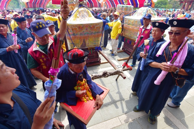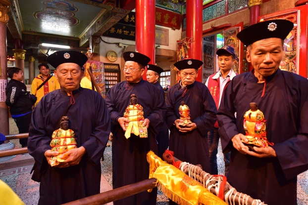 觀音佛祖等神尊迎請出龕時,丁頭列隊恭迎,並依身分逐一登上3頂大轎。