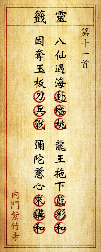八仙,是古代傳說的八位神仙,各有神通,所以俗云:「八仙過海,各顯神通。」這首籤詩,是借用八仙過海的故事,來暗示當事人,此去將有是非風波發生,須謹慎提防。