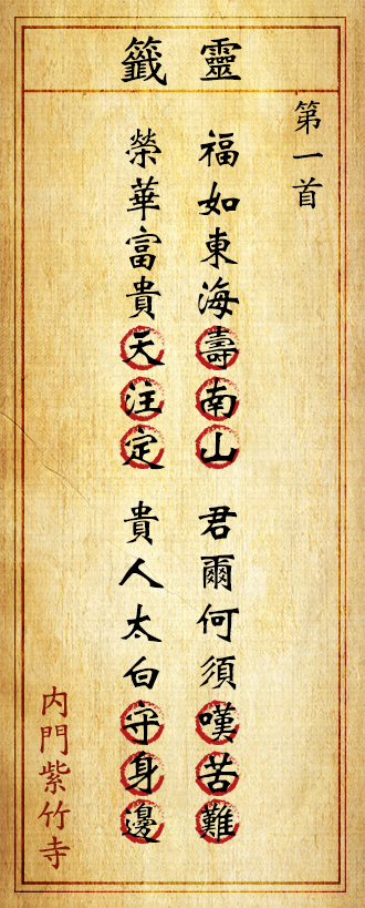 抽到此籤,表示為人要知足,不可妄求。只要你能夠一心向善,努力工作,沒有什麼值得你憂慮的,因為太白貴人星會在你身邊保佑你的。