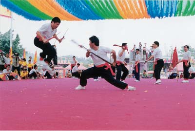 在臺灣的民俗藝陣,概略可分為文場與武場二類,內容包括了民間的小戲、舞蹈、曲藝及民俗體育雜技等,這些遊藝所表演的內容,也是我國多采多姿「百戲」的遺緒。「百戲」在我國民間技藝歷史長河裡源遠流長,它涵蓋了散處在民間的樂舞、雜劇、雜技、幻術、武術等表演藝能;最早也稱為「散樂」及「角觝戲」。