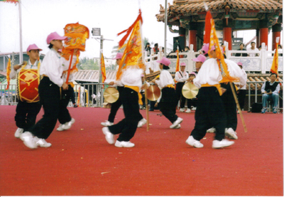 頭旗:為全隊的指揮,表演時舞動頭旗引領全隊穿梭躍動,到寺廟參神禮敬,也是以頭旗向神明致敬。