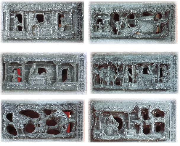 頂堵:正立面頂堵分別以:信、悌、智、勇、恥、禮為主題。