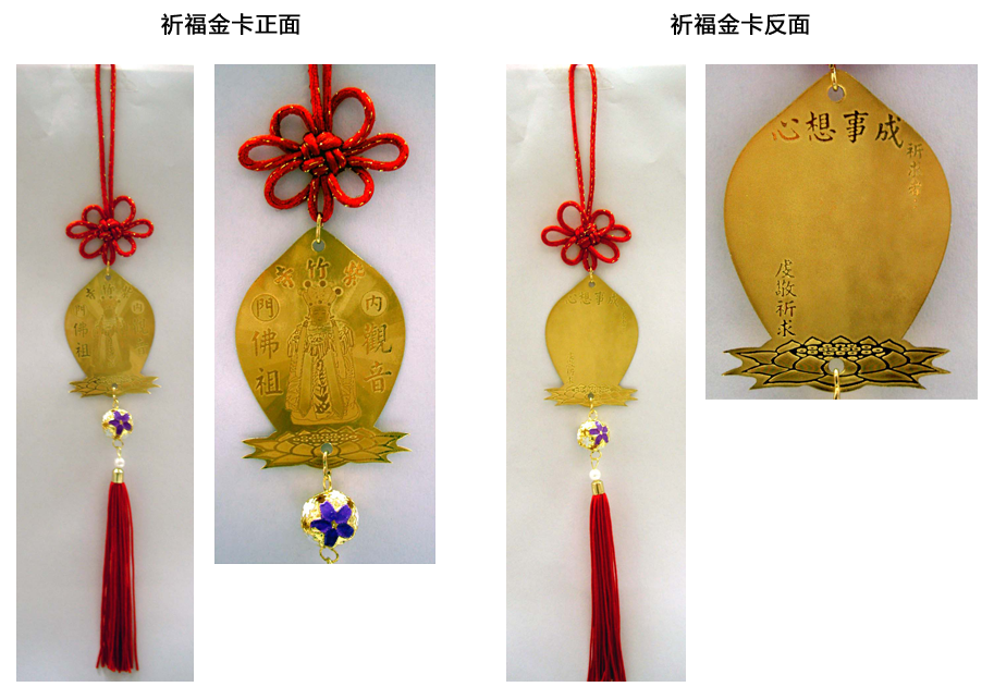 本寺為擴大服務,具體為信眾大德植福,特於服務台提供祈福金卡。