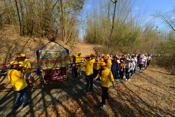 內門紫竹寺佛祖香陣行經「尪仔上天」路段,月世界景觀一覽無遺,頗具氣魄。(王大雄/攝)