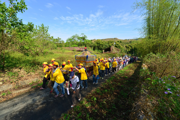 「內門紫竹寺」的爐主燈、頭旗,及其佛祖轎與龐大隨香,行於山林,壯闊而具氣勢。