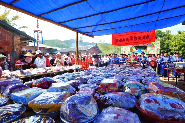 各敬信眾擺設「敬桌」,必備豐盛祭品以祭。