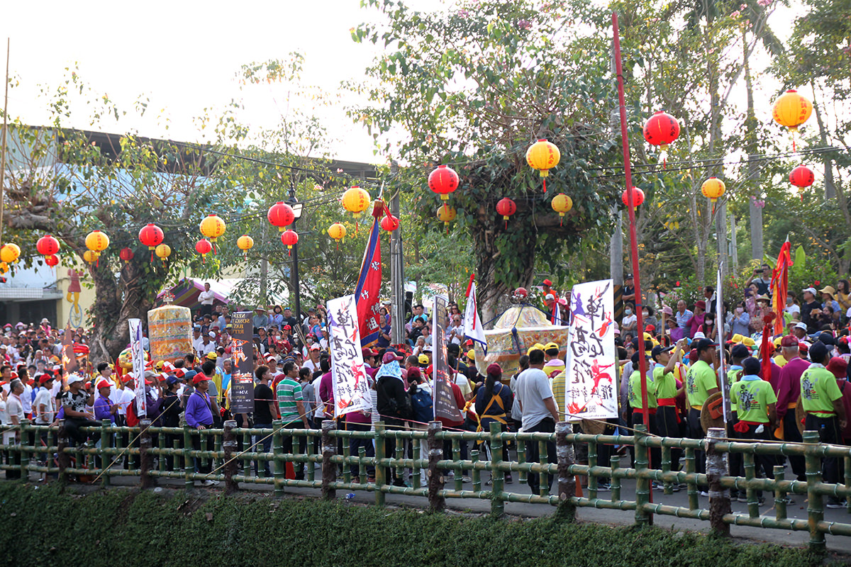 「號頭炮」一燃放,香陣正式起駕,佛祖轎後的隨香信眾人山人海,甚為壯麗。