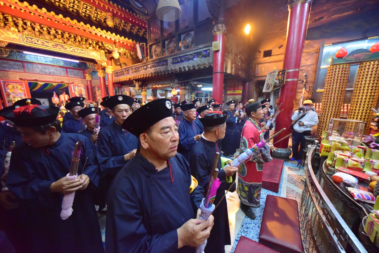 停轎後,所有神尊逐一被迎請出轎,眾丁頭則於正殿前排成兩列恭迎安座。